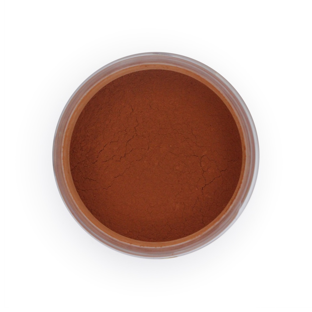 Глинистая, термически обожжённая, горная порода красного цвета. При нагревании желтой охры при определенной температуре гидроксиды железа в ней теряют часть гидратированной воды и переходят в оксиды, что придает охре красный цвет. Укрывистость и светостойкость высокие.